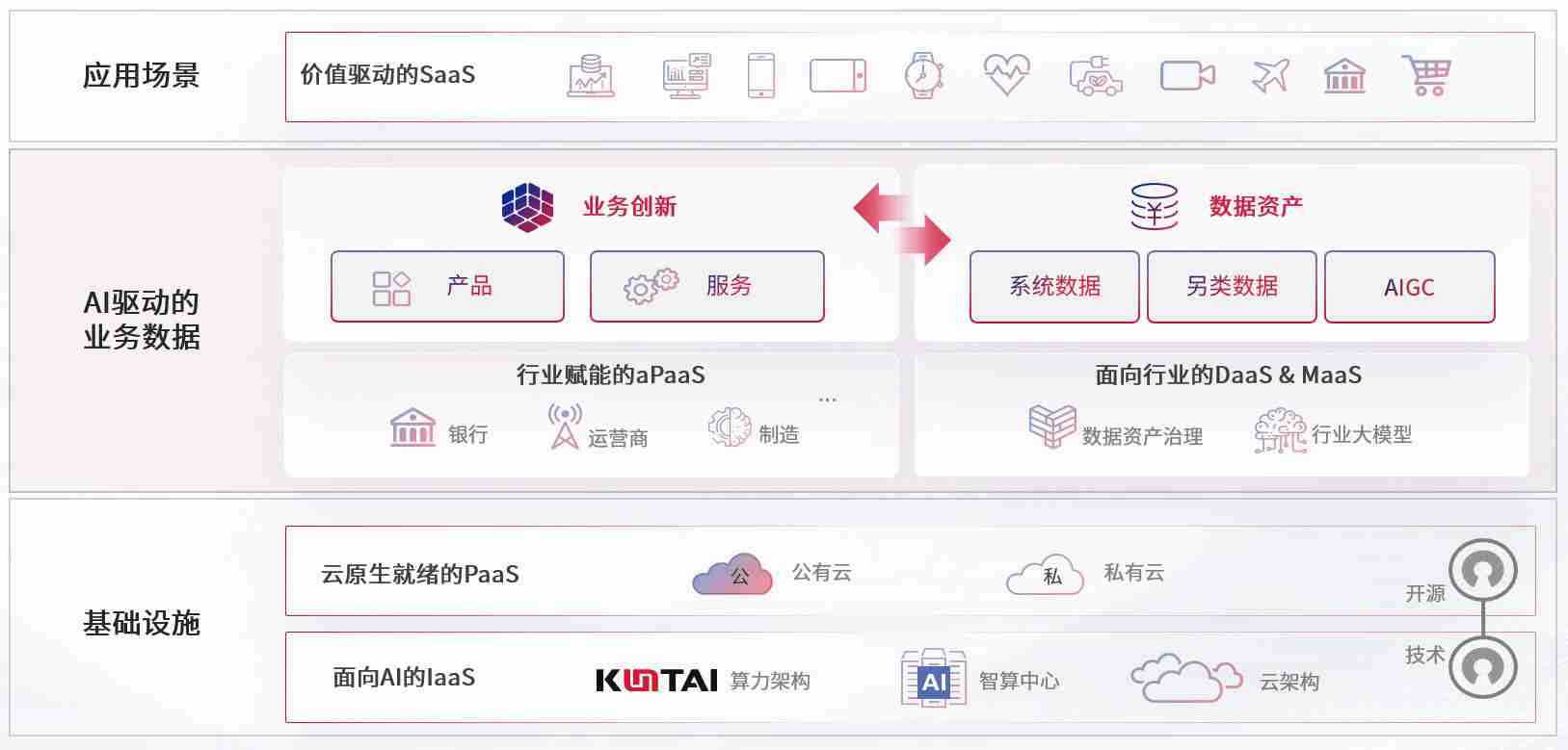 数字时代,,,围绕企业数字化转型的关键要素,,,,ABG集团数码开创性的提出数云融合战略和技术体系框架,,着力在云原生、、、、数字原生、、、、AI原生和信创产业上架构产品和服务能力,,为处在不同数字化转型阶段的快消零售、、、、汽车、、、金融、、、、医疗、、、政企、、、教育、、运营商等行业客户提供泛在的敏捷IT能力和融合的数据驱动能力,,构建跨界融合创新的数字业务场景和新业务模式,,助力企业级客户建立面向未来的核心能力和竞争优势,,,,全面推动社会的数字化、、、、智能化转型升级。。。